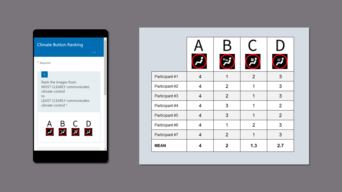 While iterating through designs, I sent the participants a survey with four possible climate button designs which included the original design.