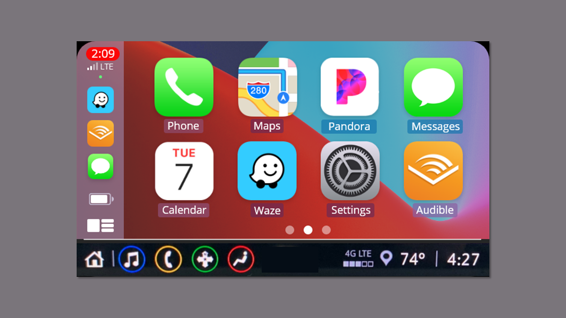 I searched images of the multimedia displays of the major automakers to see if they had a large time display, outside temperature display, and navigation buttons for the display from within CarPlay.